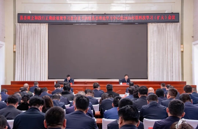 4月23日上午,县委树立和践行正确政绩观学习教育读书班暨县委理论学习中心组2026年第四次学习(扩大)会议召开,县委书记张振亚主持并讲话。他强调,要深入学习贯彻习近平总书记关于树立和践行正确政绩观的重要论述,进一步深化学习教育、筑牢思想根基、校准行动方向,引导全县广大党员干部以实干实绩实效推动全县经济社会高质量发展和“十五五”良好开局。